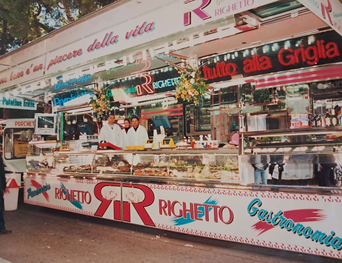 Tutto ha inizio nel 1975 a Mogliano, nel cuore delle Marche, quando Enrico Sebastiani, per tutti Righetto, decide di trasformare l’arte della lavorazione della "porchetta" del nonno Saverio in un’attività itinerante d’eccellenza.